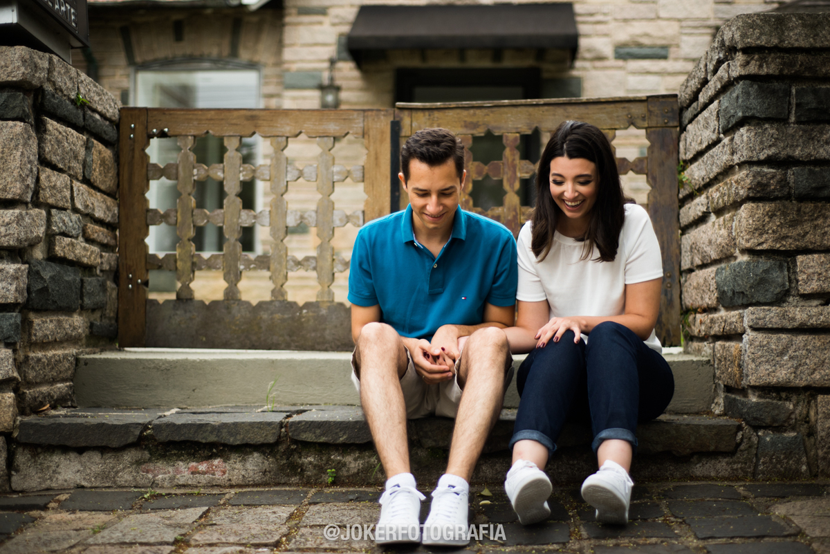 No dia do ensaio a busca foi por cores e texturas urbanas - paredes, grades, construções e a beleza das ruas da nossa cidade - combinando algo que é constante na profissão dos dois (ela é arquiteta e ele engenheiro).